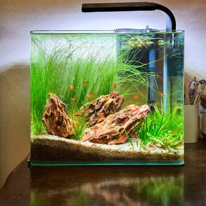 Маленький аквариум с рыбками на рабочем столе не только много места не займёт, но и подарит расслабление, отвлечение от суеты, хорошее настроение и уникальность.