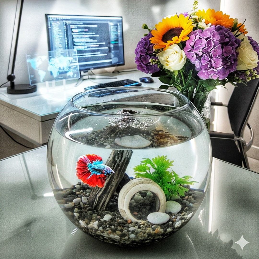 Маленький акваріум з рибками на робочому столі не лише багато місця не займе, але і подарує розслаблення, відверне від метушні, гарний настрій і унікальність.